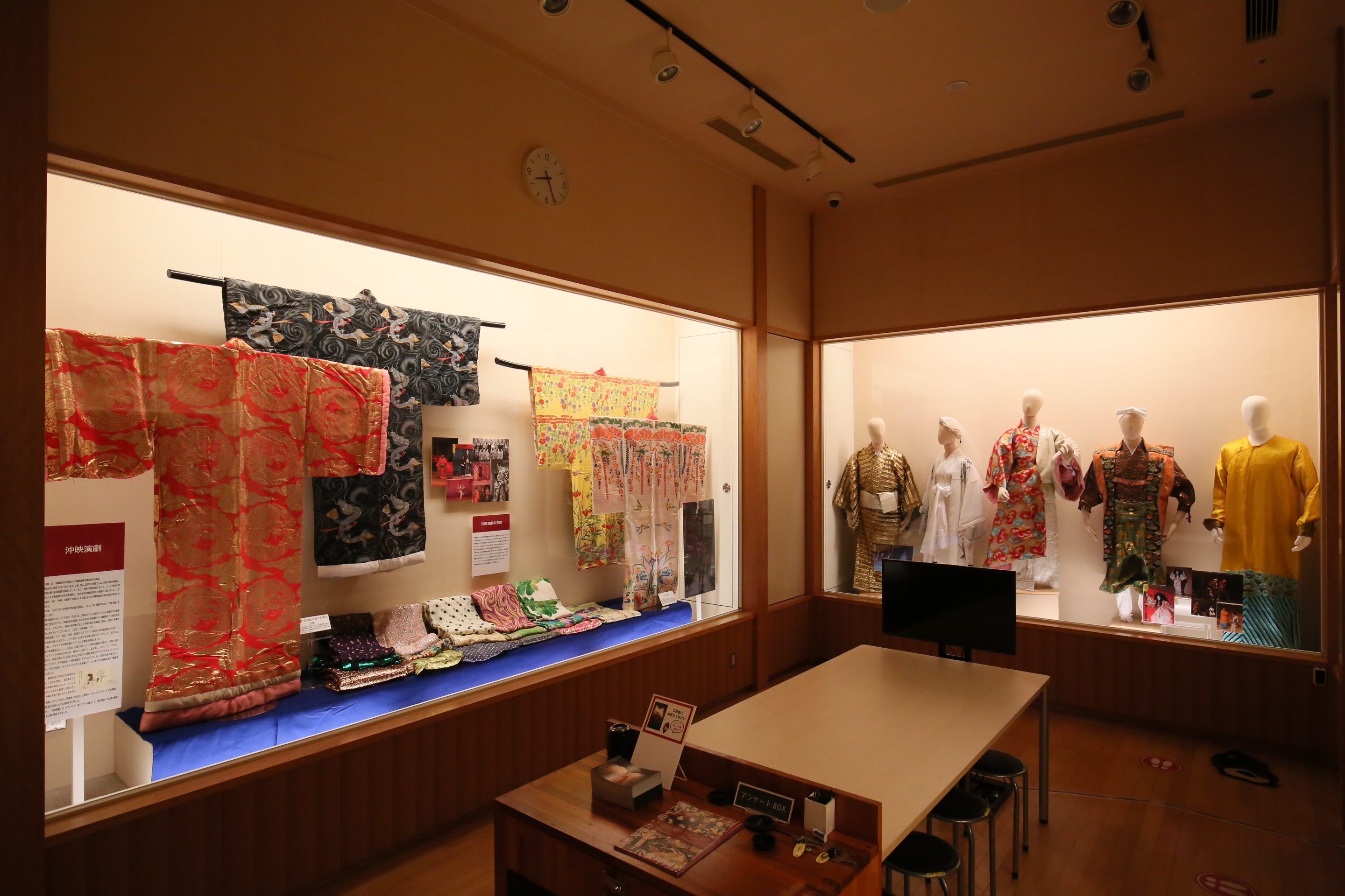 「老人老女・若衆踊」「女踊」「二才踊」「雑踊」について取り上げ、それぞれの特徴や代表的な演目について解説します。 さらに、小さなお子さまにも舞踊に親しんでいただけるよう、展示室内に当劇場オリジナルの琉球舞踊ぬり絵ができるスペースを設置いたしました。 琉球舞踊で着用される様々な衣裳について学び、好きな色で衣裳をデザインすることができます。 |