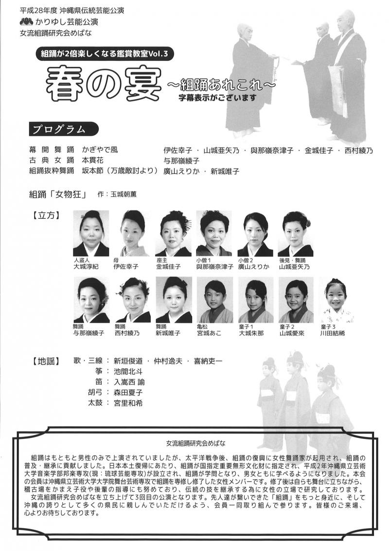 平成28年度沖縄県伝統芸能公演 かりゆし芸能公演 女流組踊研究会めばな 春の宴~組踊あれこれ~