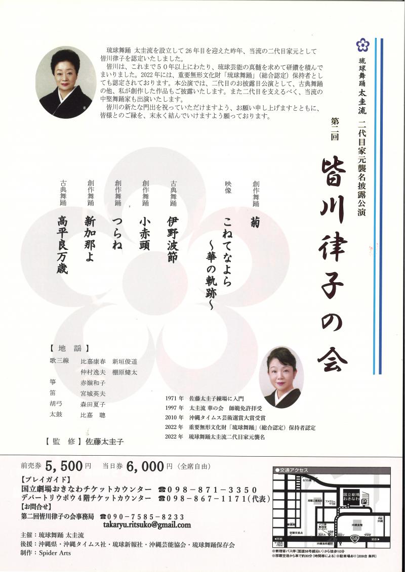琉球舞踊 太圭流 二代目家元襲名披露公演 「第二回 皆川律子の会」