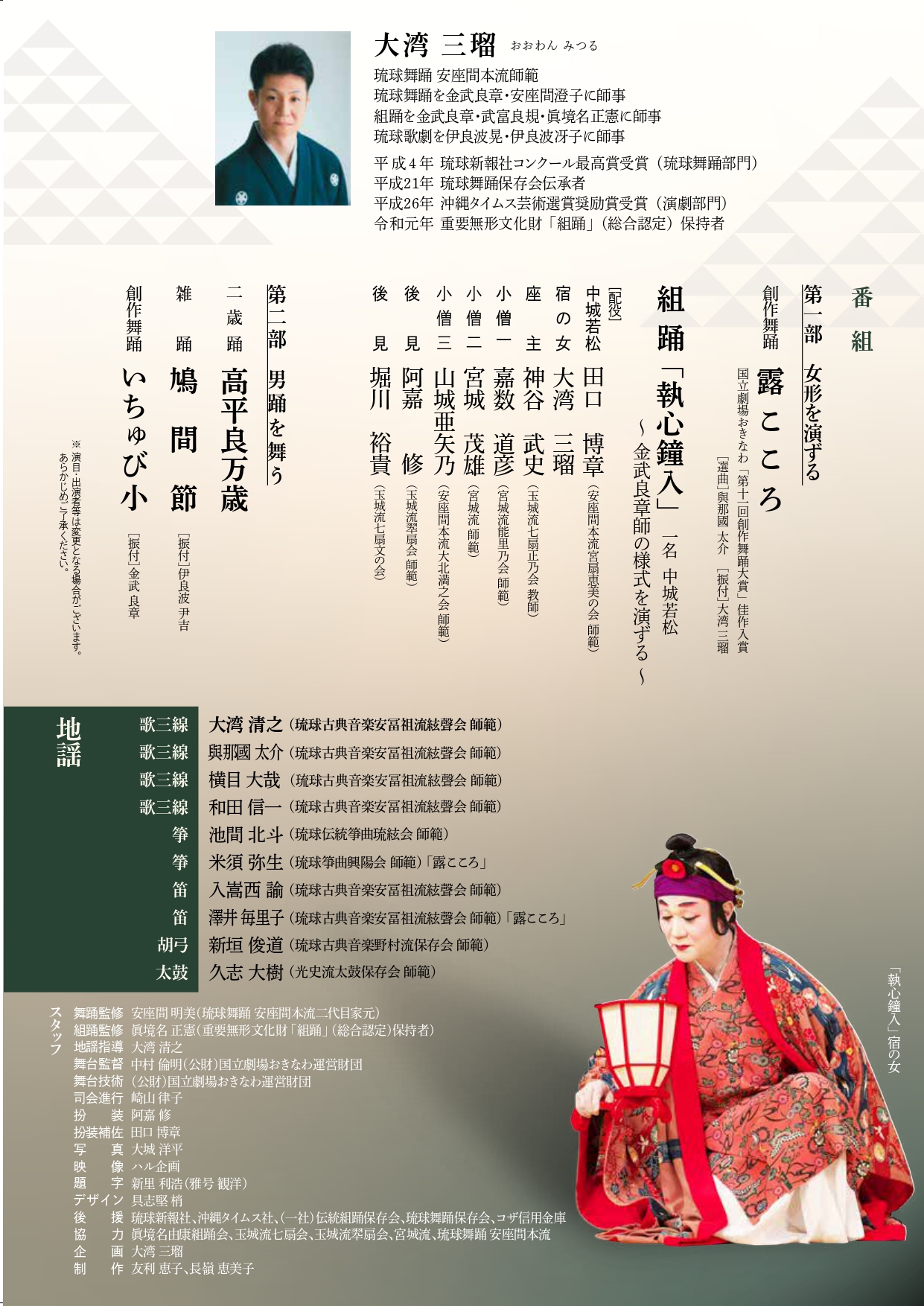 芸歴五十周年記念 琉球舞踊 安座間本流 第七回 大湾三瑠独演会 究道無限~舞と組踊~ ※完売しました!!