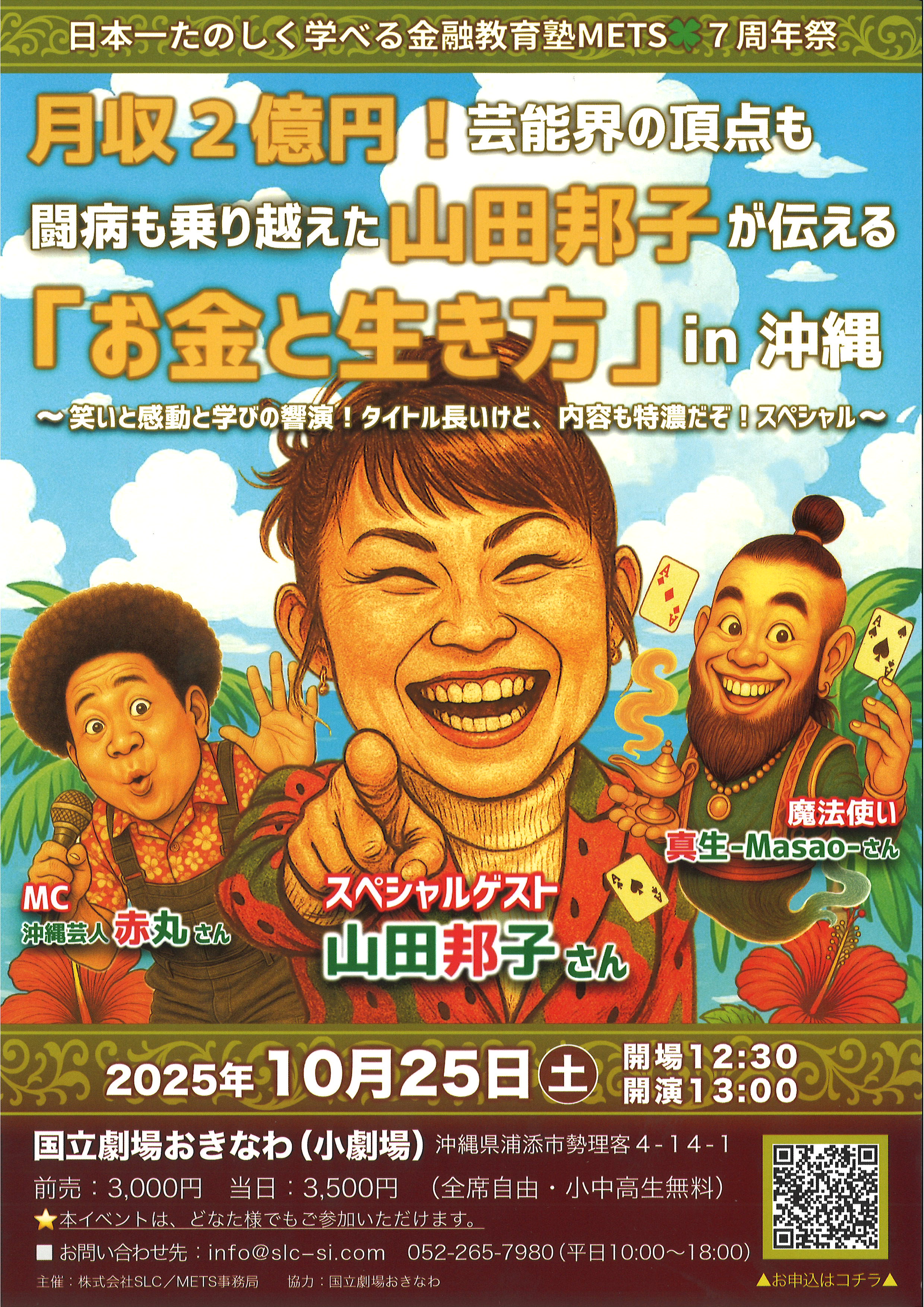 日本一たのしく学べる金融教育塾METS 7周年祭 ~月収2億円!芸能界の頂点も闘病も乗り越えた山田邦子が伝える「お金と生き方」in 沖縄~