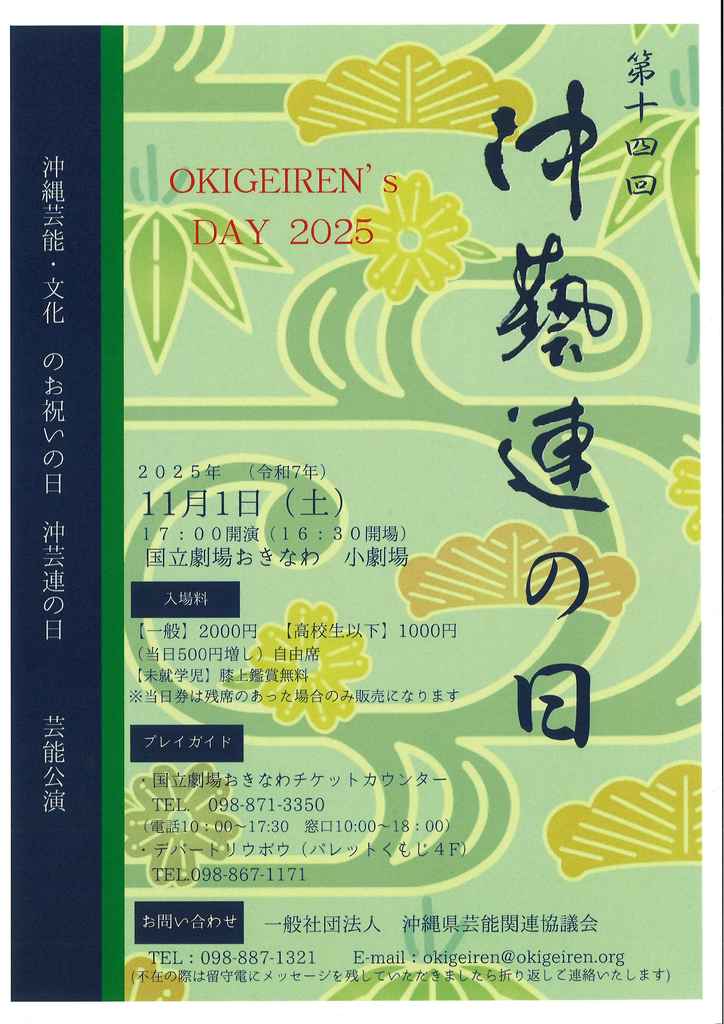 一般社団法人 沖縄県芸能関連協議会 TEL:098-887-1321、Mail:okigeiren@okigeiren.org