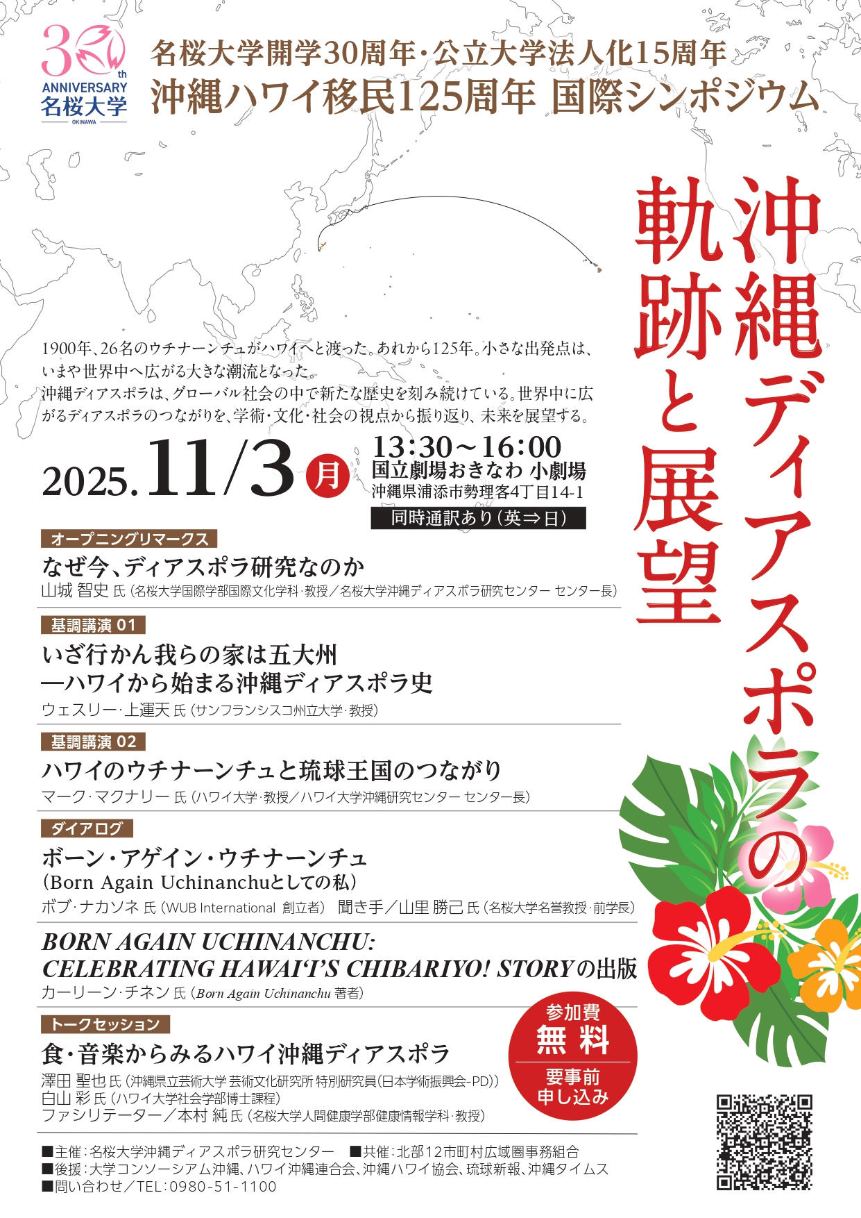 名桜大学開学30周年・公立大学法人化15周年シンポジウム「沖縄ディアスポラの軌跡と展望」