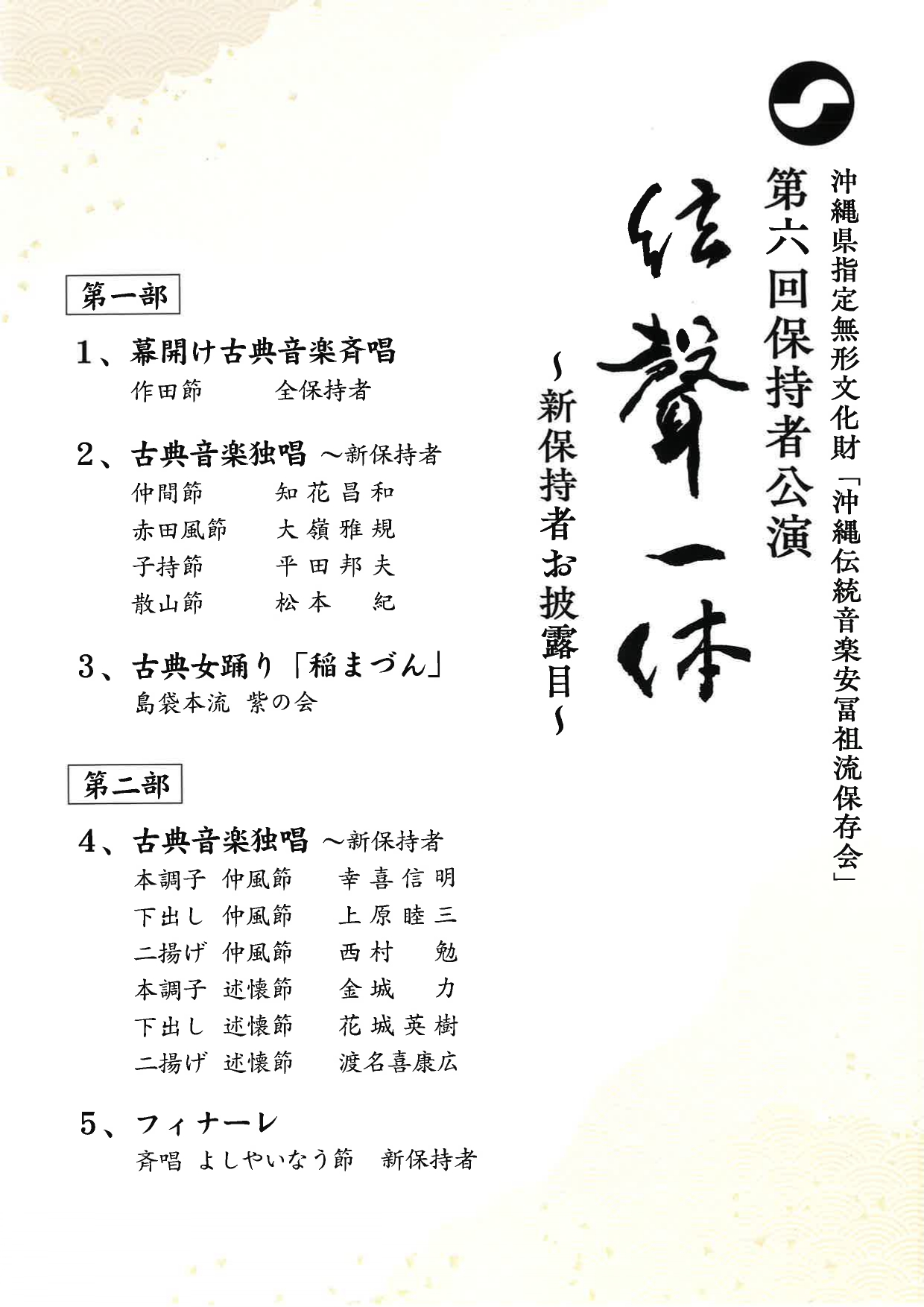 沖縄県指定無形文化財「沖縄伝統音楽安冨祖流保存会」 第6回保持者公演 ~絃聲一体~ 第5次保持者認定者お披露目公演