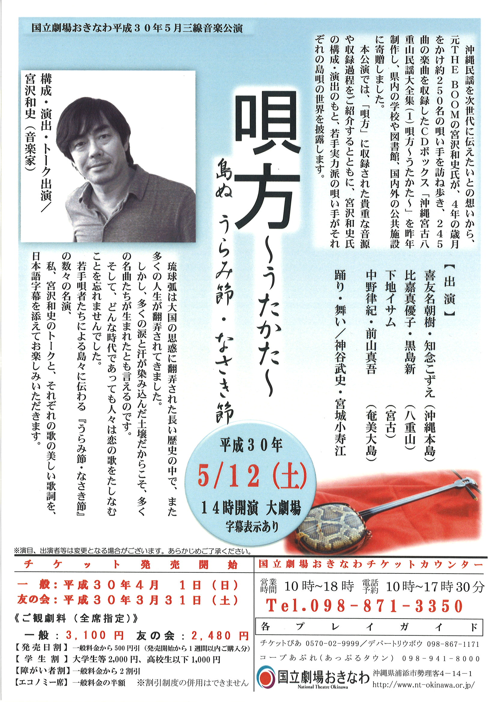 構成・演出・トーク出演/宮沢和史(音楽家) 喜友名朝樹・知念こずえ(沖縄本島)