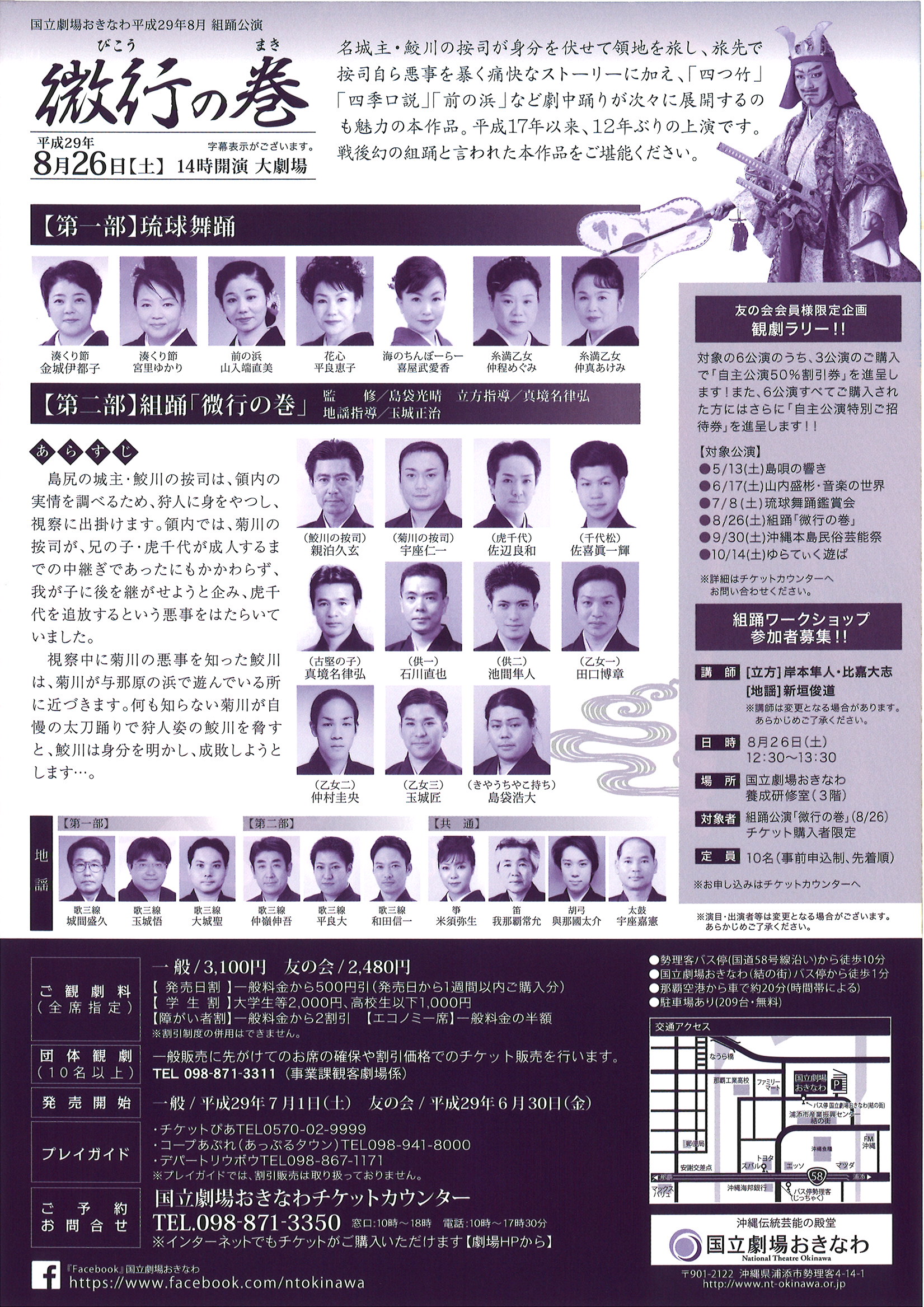 地謡指導/玉城正治 [配役] 鮫川の按司/親泊久玄 菊川の按司/宇座仁一 虎千代/佐辺良和 千代松/佐喜眞一輝 古堅の子/真境名律弘