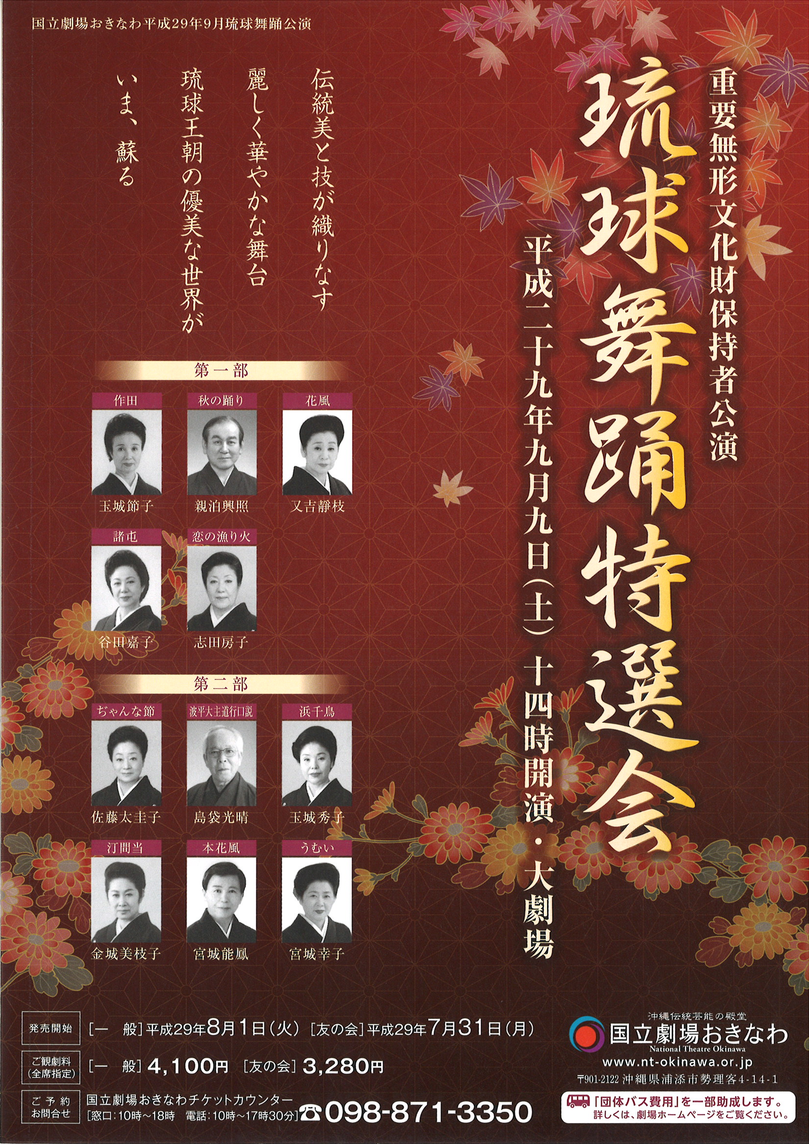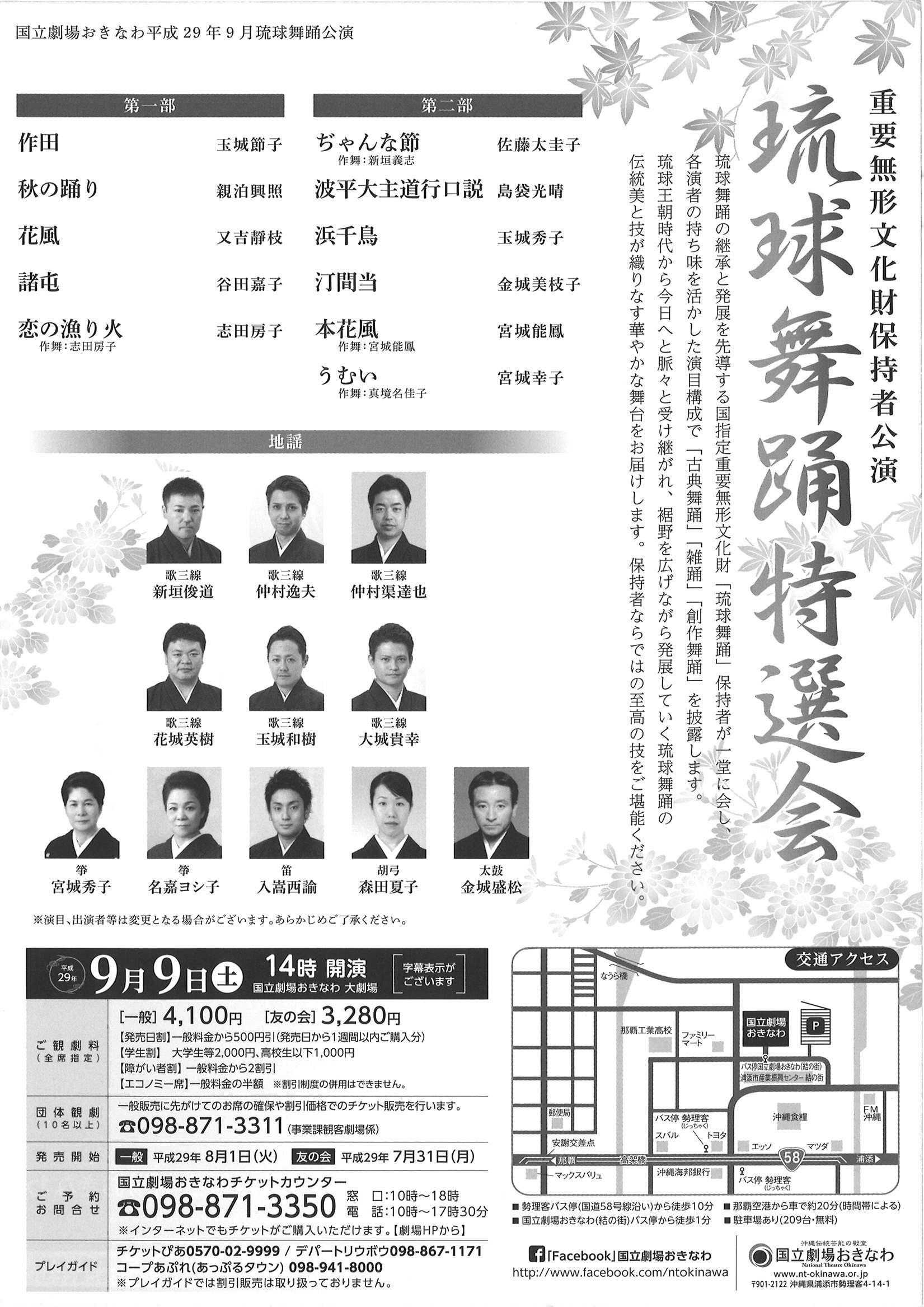 -演目- 【第一部】 作田/玉城節子 秋の踊り/親泊興照 花風/又吉靜枝 諸屯/谷田嘉子