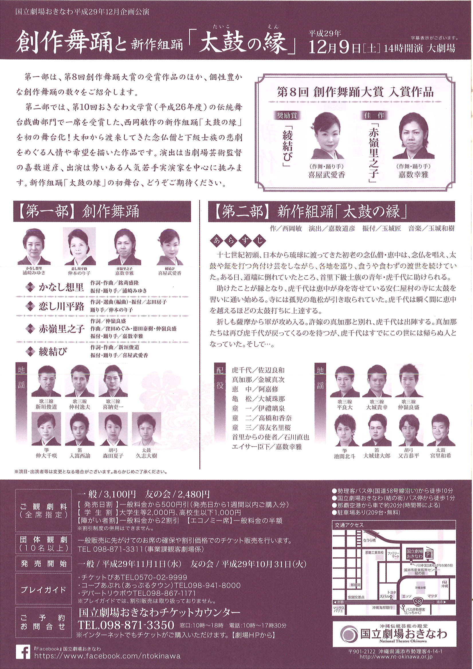 (#2)出演者の追加・・・第一部歌三線に「徳田泰樹」を追加(H29.10.24) (#3)出演者の追加・・・第一部胡弓に「又吉恭平」を追加(H29.10.24) (#4)出演者の追加・・・第一部箏に「池間北斗」を追加(H29.10.24) ※演目・出演者等は都合により変更になる場合がございます。あらかじめご了承ください。