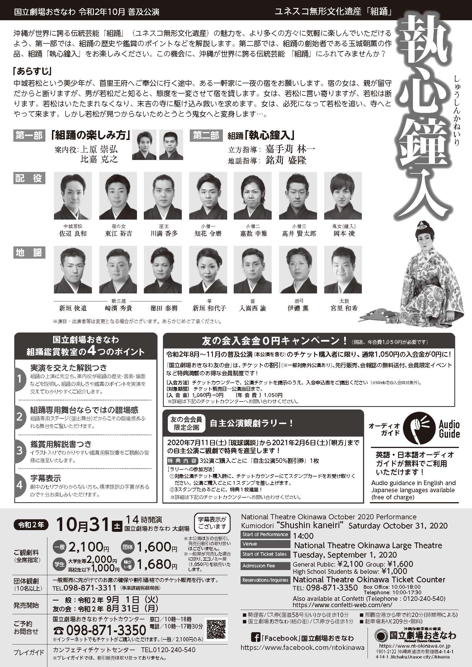 10月普及公演 組踊鑑賞教室「執心鐘入」