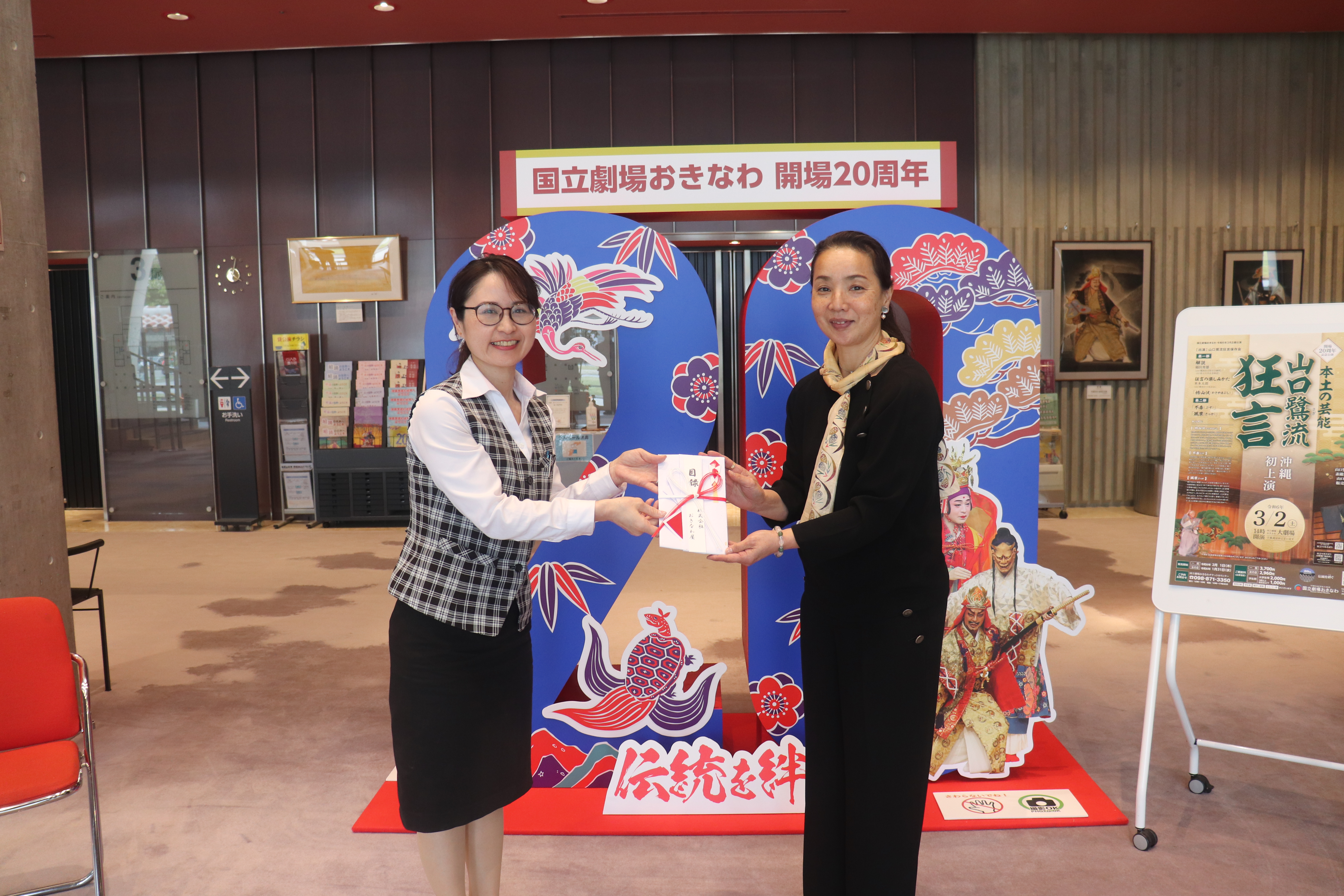 2024年2月16日(金)、国立劇場おきなわ開場20周年を記念し、「おきなわ屋 Presents 国立劇場おきなわ鑑賞チケット贈呈式」が開催され、沖縄県立芸術大学及び沖縄県立南風原高等学校に国立劇場おきなわ自主公演「本土の芸能 山口鷺流狂言」の鑑賞チケットが贈呈されました。