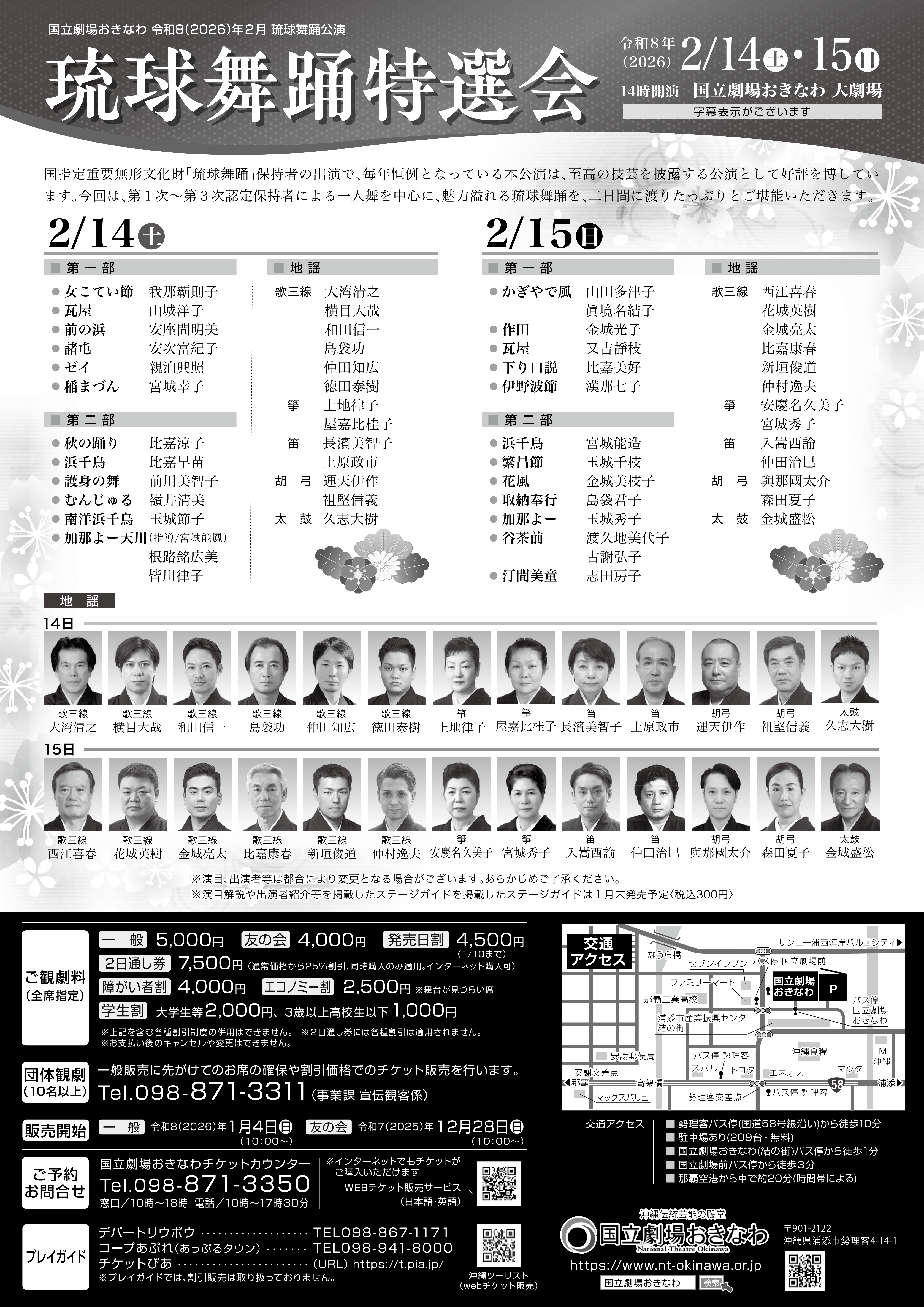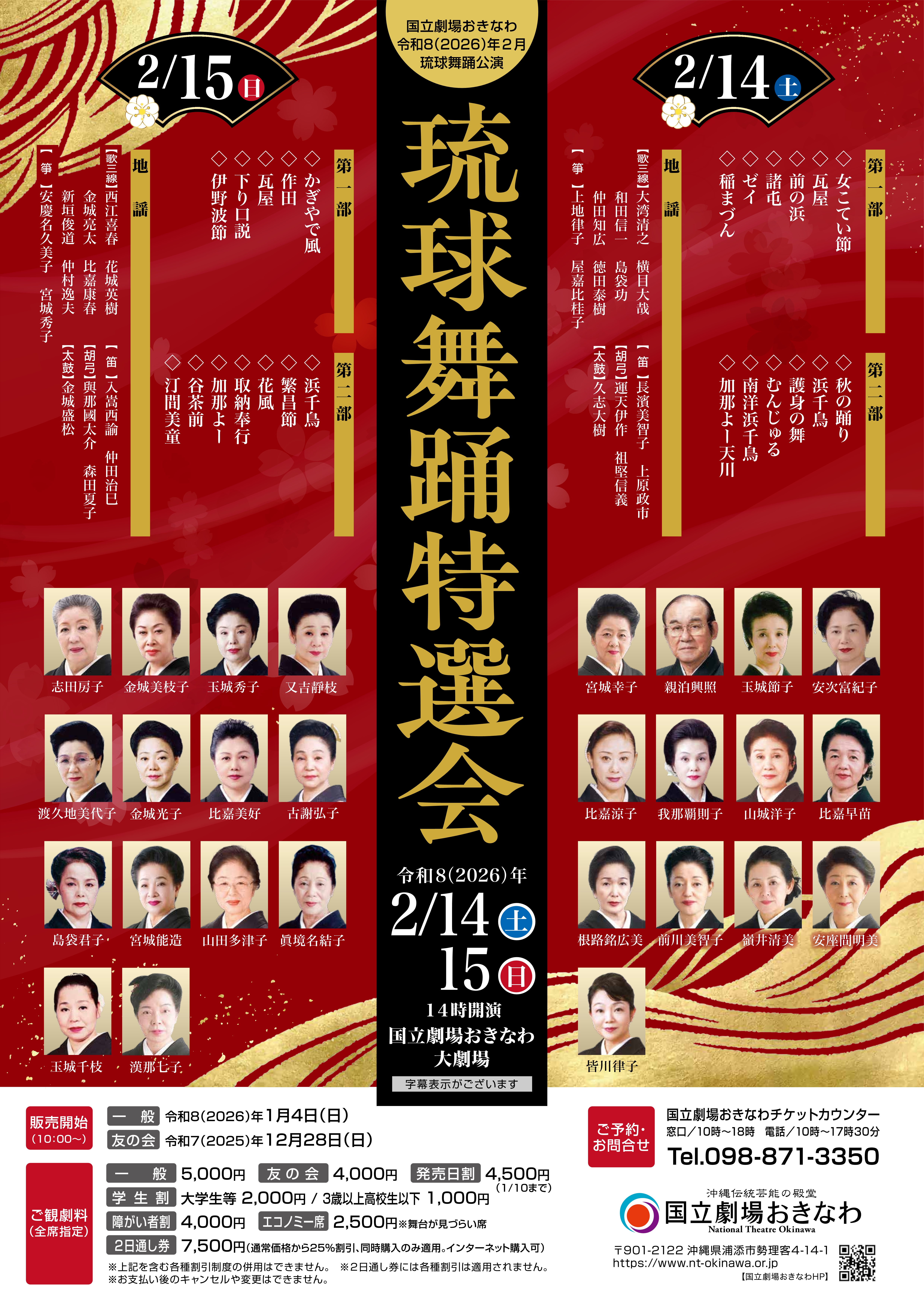 令和8年2月琉球舞踊公演 琉球舞踊特選会